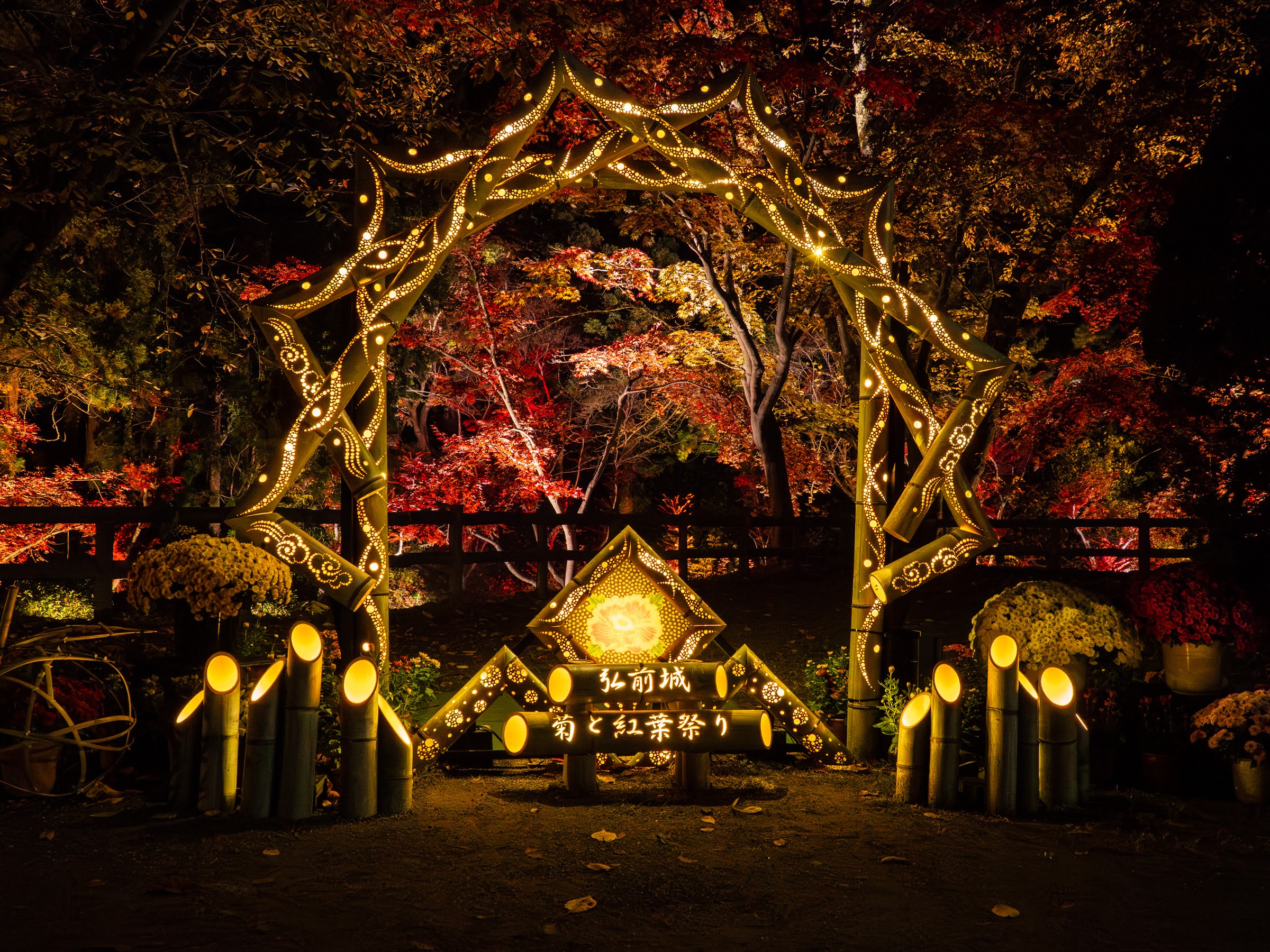 なお、この竹あかりを含む弘前公園のライトアップはまつり終了後も11月16日まで延長となり、弘前公園の夜を彩りました。