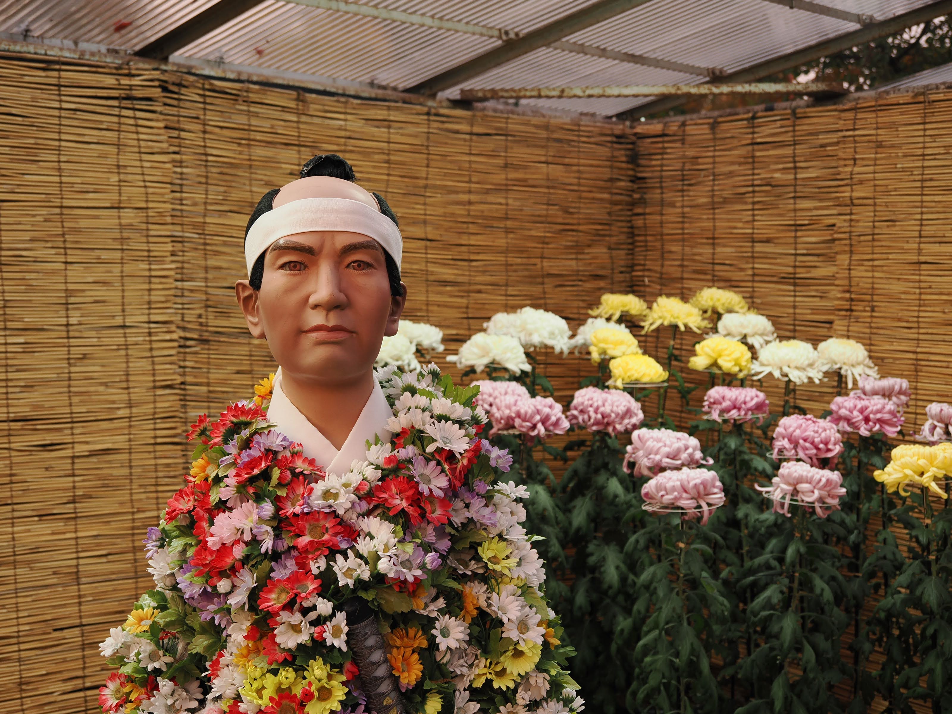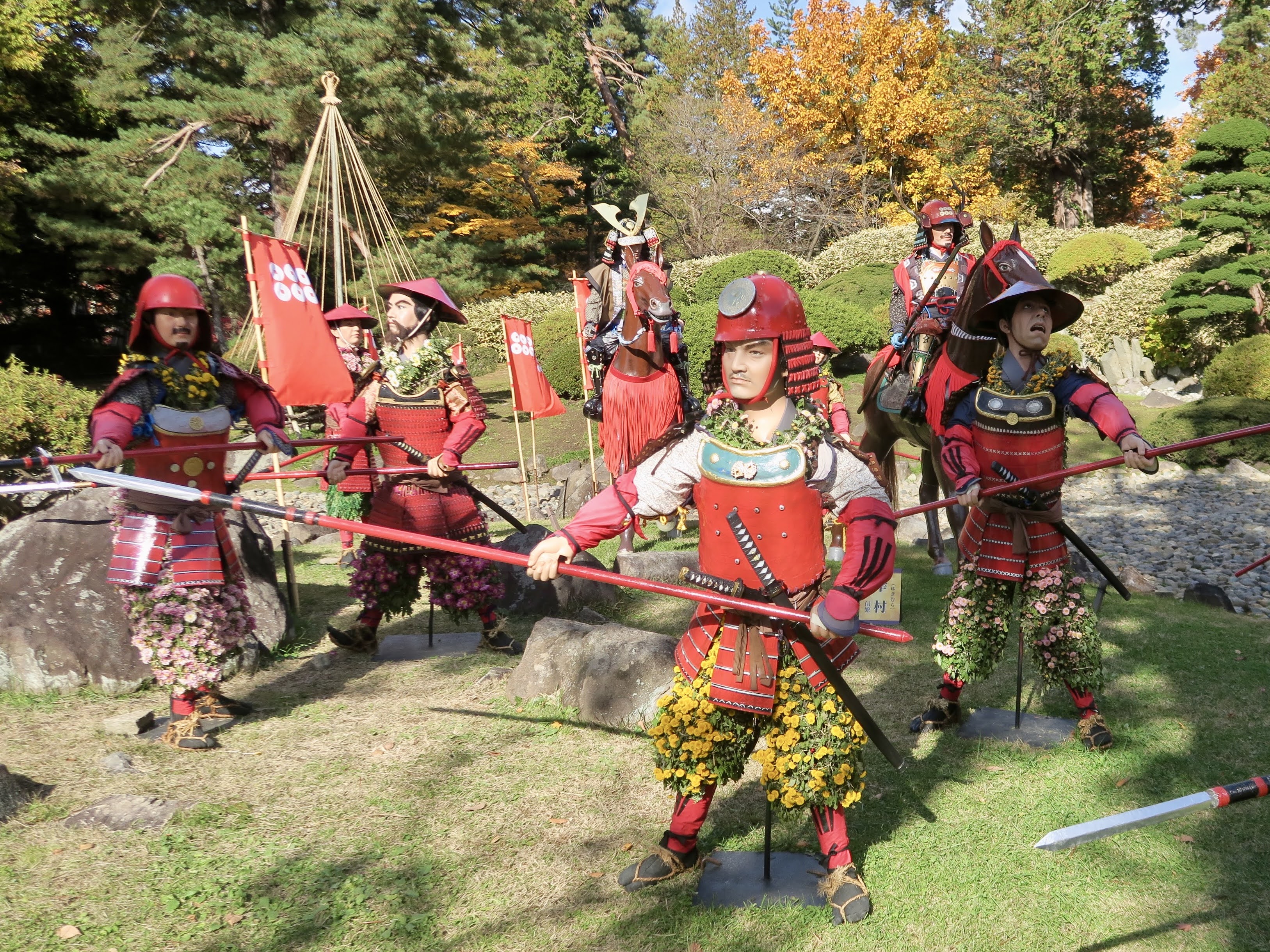 見たことが無い方に説明しますと、等身大より二回りくらい小さいマネキン人形に、菊で着物や鎧を描いて、大河ドラマや津軽の歴史の場面を展示していたものです。