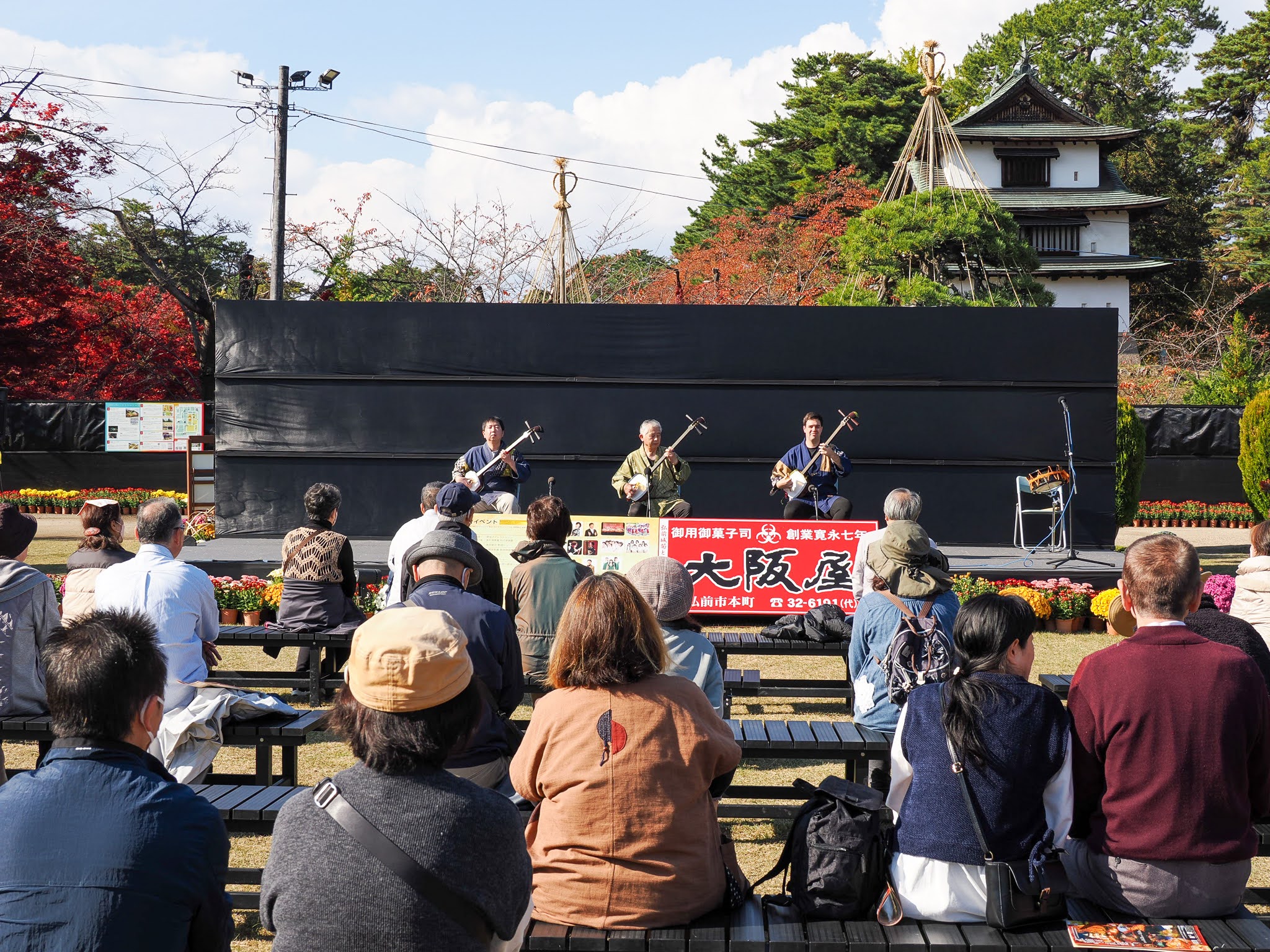 自由広場のステージでは津軽三味線の演奏や、歌謡曲ショーも開催されています。