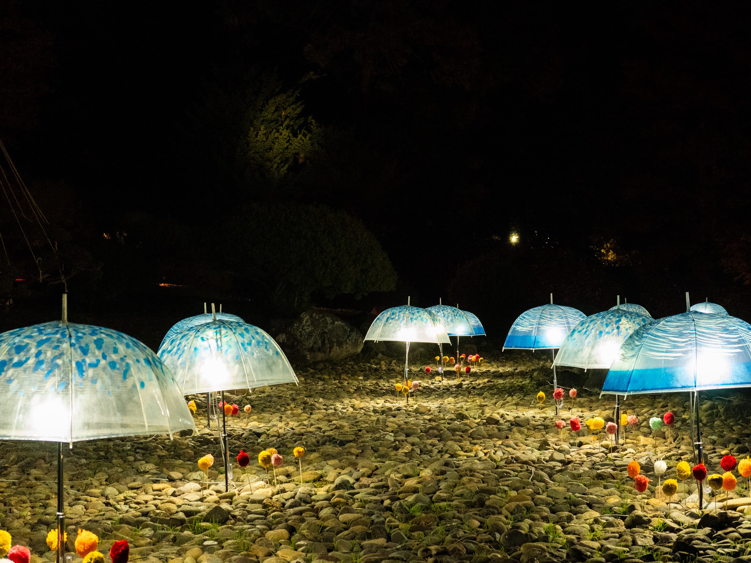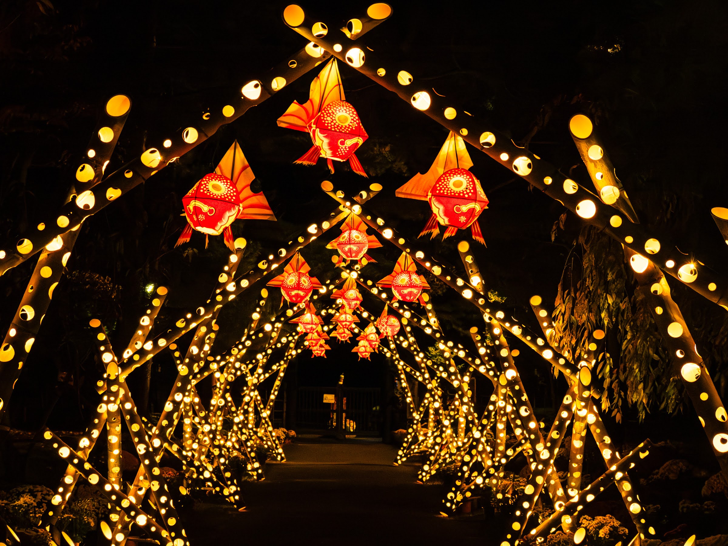 菊人形の展示が退いて、新しいライトアップやオブジェが並んでいても、この園内を散策して感じたのはゆったりとした和の時間でした。