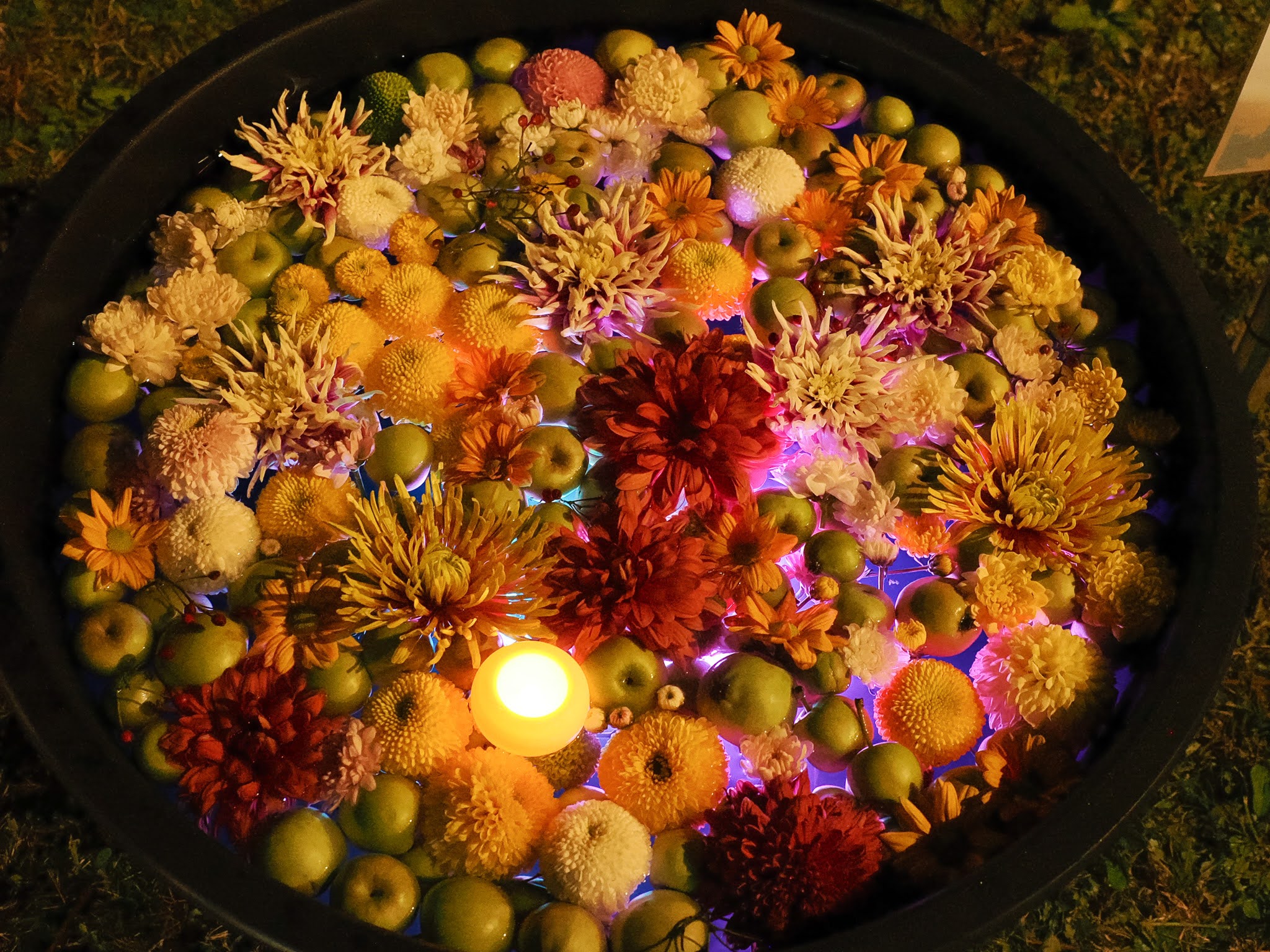この三の丸庭園には他にも小さなりんごと花を使った「りんごの花手水」や、フェリシモと津軽びいどろのコラボによる傘を使った展示もあり、多くの方がスマートフォンやカメラで写真や動画を撮影していました。