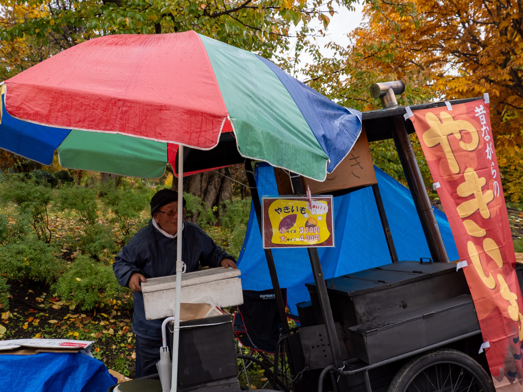 今年の菊と紅葉まつり期間は、週末に限って天気が悪く、屋外で食べるのは難しかったですね。
