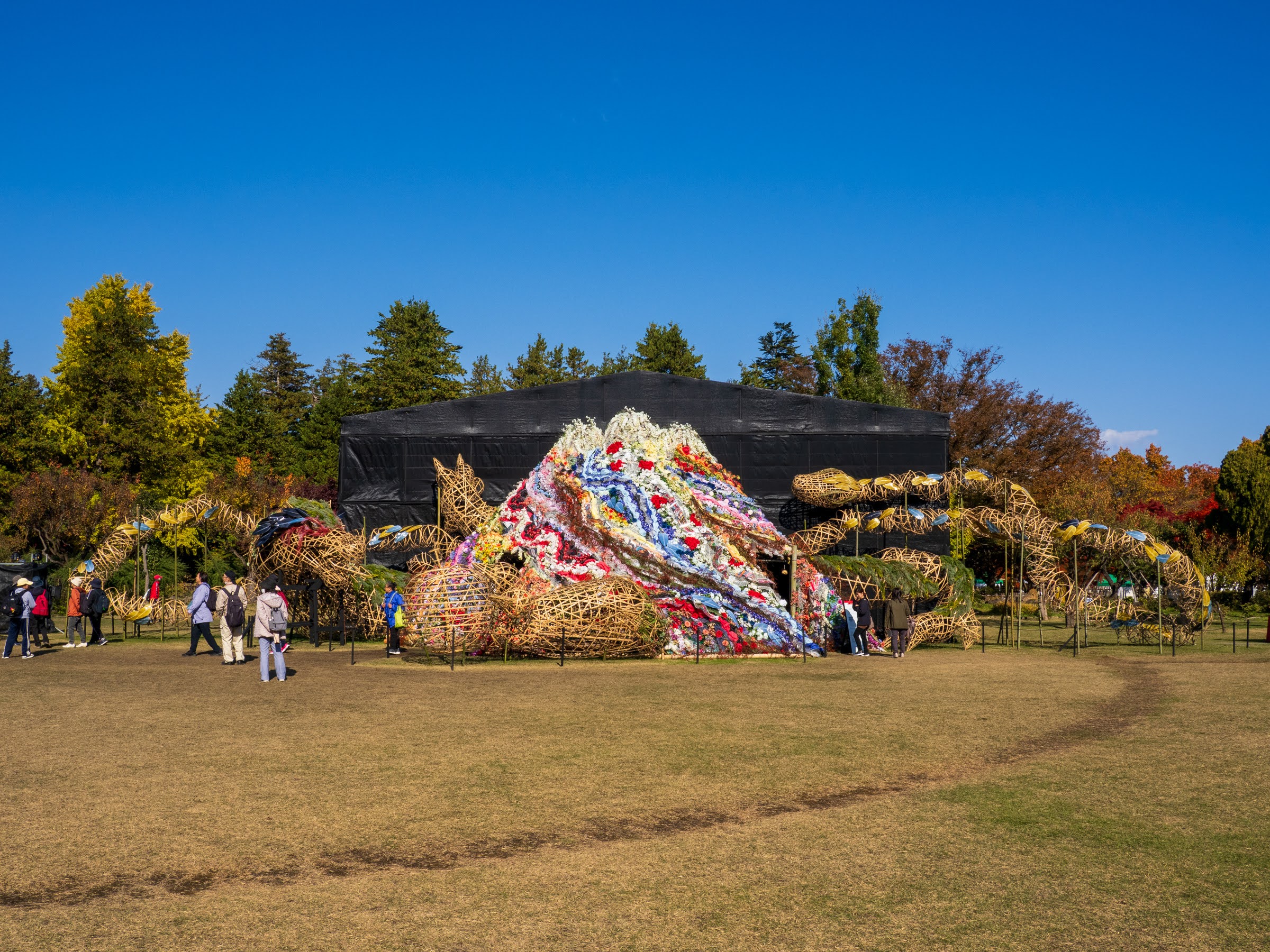 2020年から始まったこの新しい菊と紅葉まつりのシンボルは、「青龍」「朱雀」「玄武」など東洋の神獣がモチーフ。
