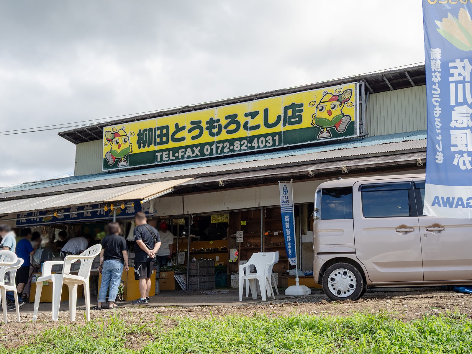 今回は嶽きみロードをしばらく走り、右手側にある「柳田とうもろこし店」を訪れました。