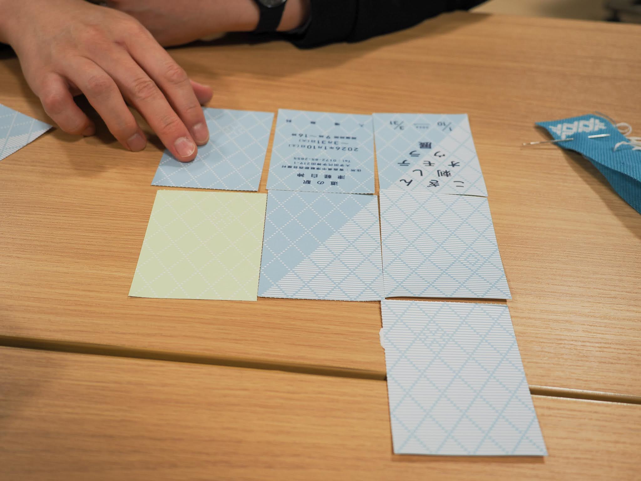 切り取ると「カード」になり、並べて模様を繋げたり、メモ帳として使ったりできる仕掛けです。