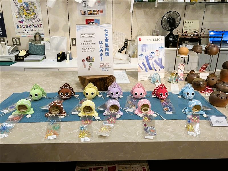 お次に「いらっしゃいませ」とでも言っているかのように迎えてくれたのが、鮮やかな色の「七色金魚ねぷた風鈴」。