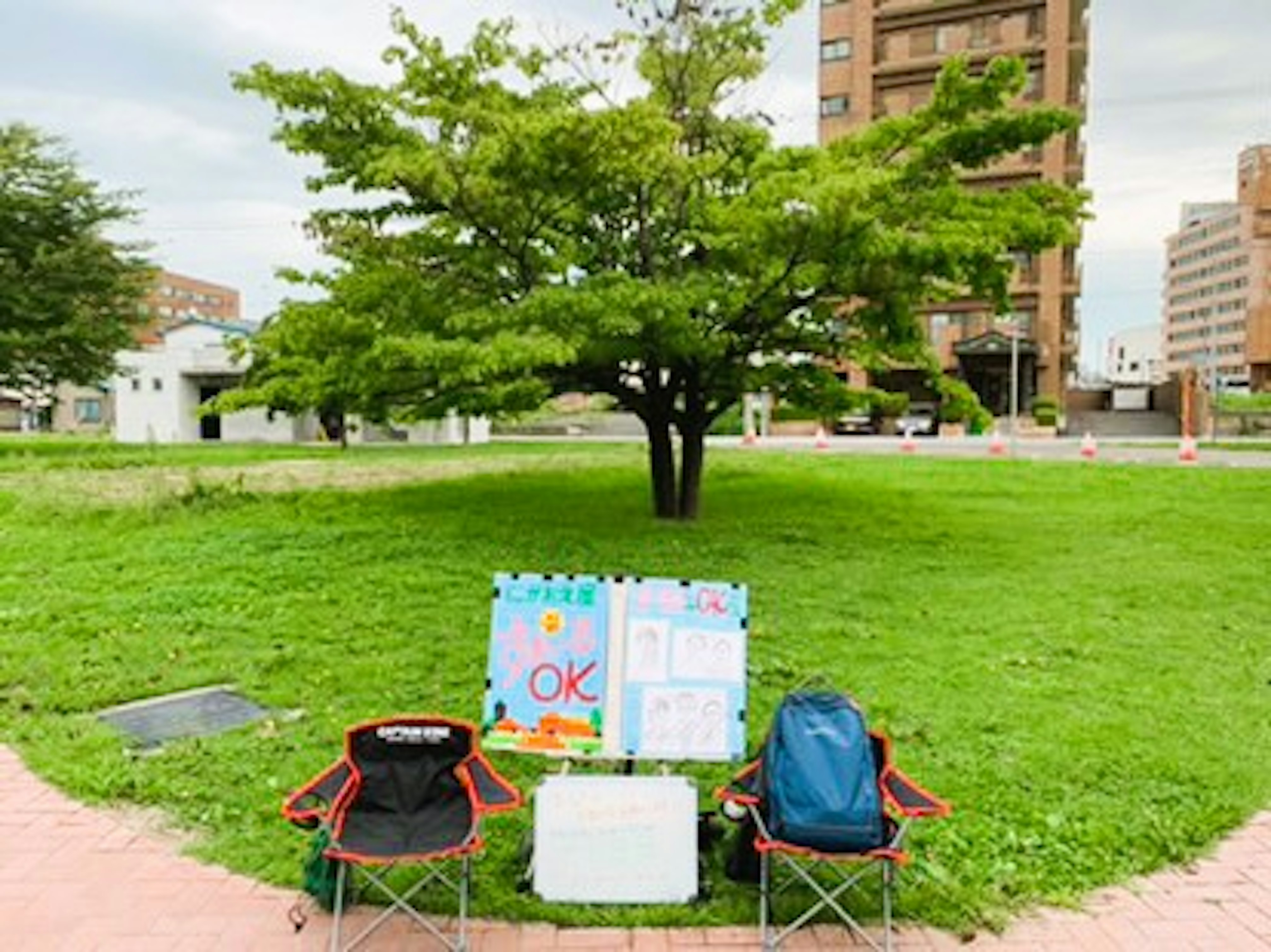 どこでにがおえ屋を開こうかと最初に思いついたのは、土手町の蓬莱広場。