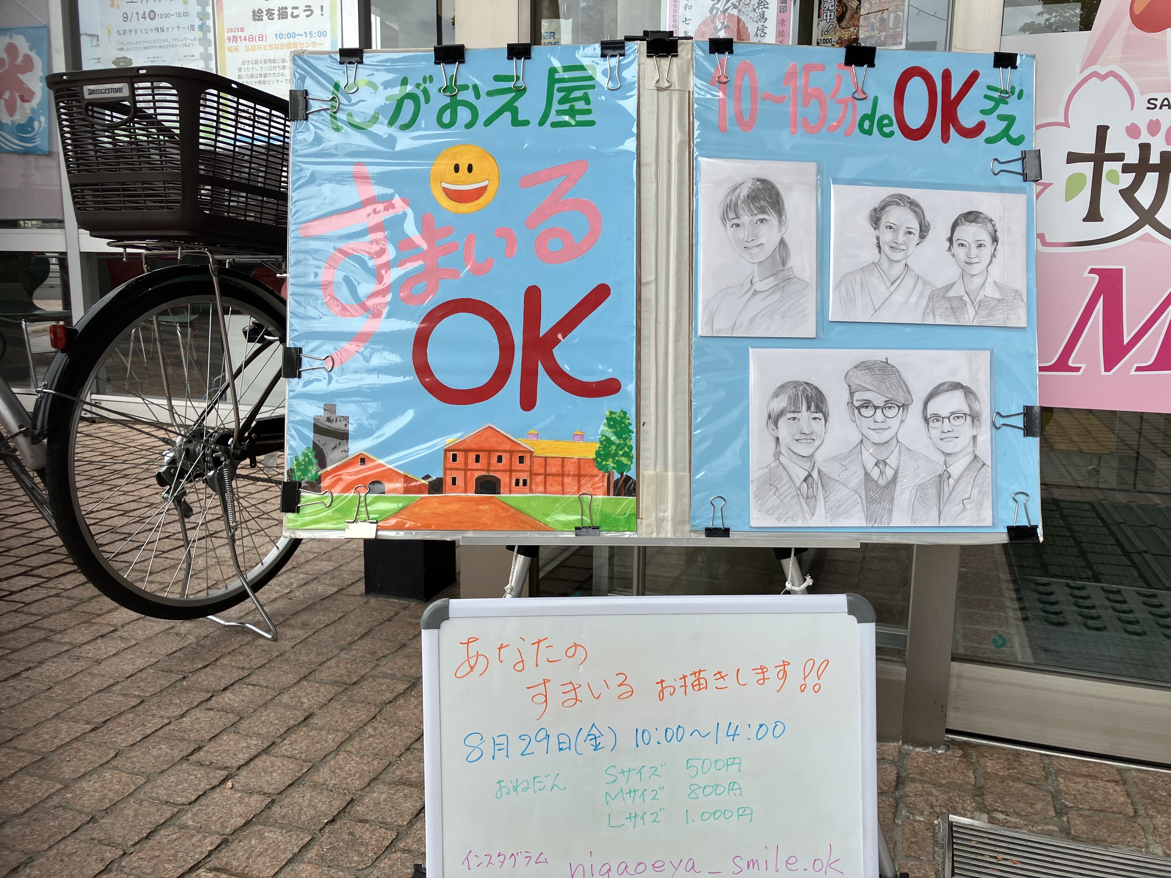 にがおえ屋さんのInstagramの情報によれば、夏場は暑いので、近くにある「まちなか情報センター」の中で営業とのこと。