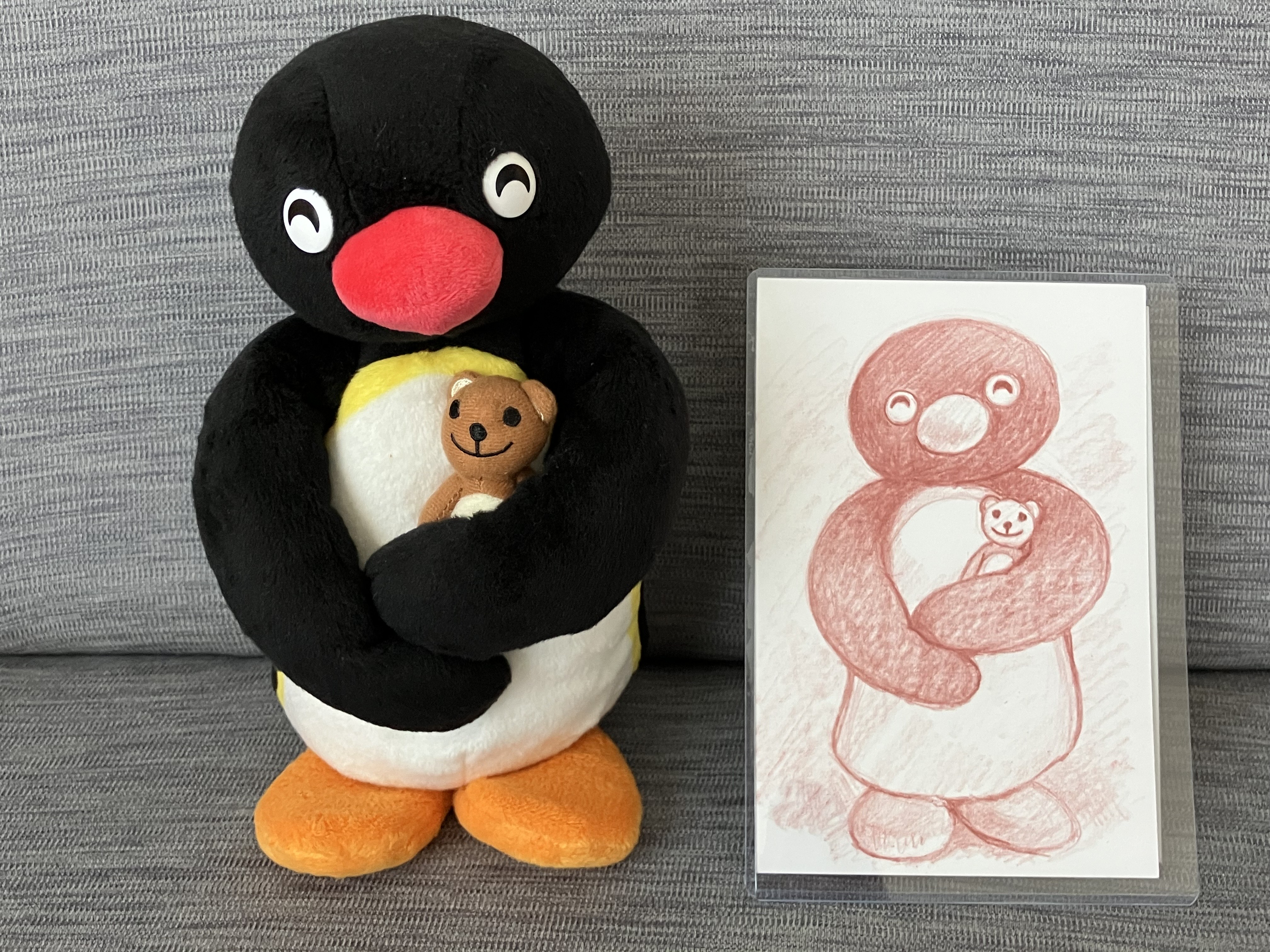 ぬいぐるみとはまた違った可愛い、ピングーの似顔絵ができました。