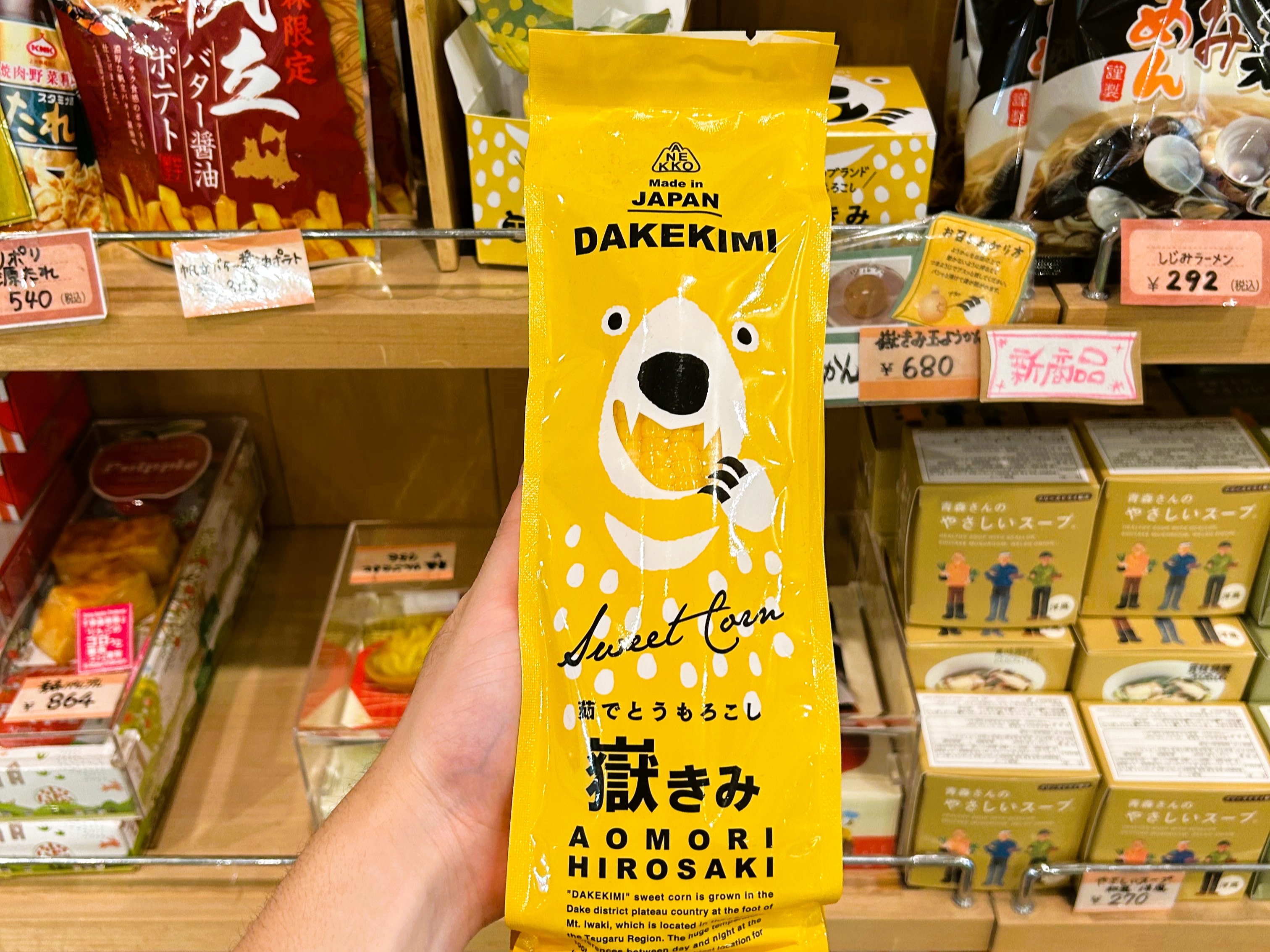 「直売所 野市里」のお土産コーナーには、茹で嶽きみの真空パックをはじめ、プリンやロールケーキなど、バラエティ豊かな嶽きみ商品が並んでいます。