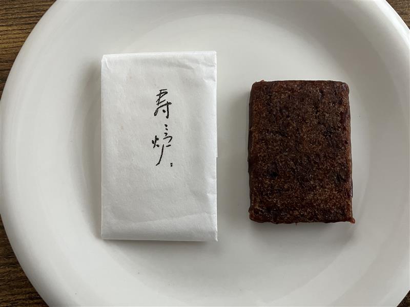 その店名と同じ名前のお菓子「寿々炉」は、丹波の大納言あずきを使用し、きんつば風に焼きあげた半生菓子。