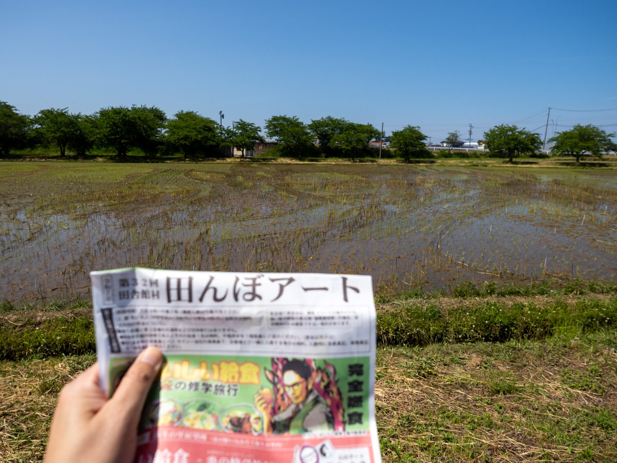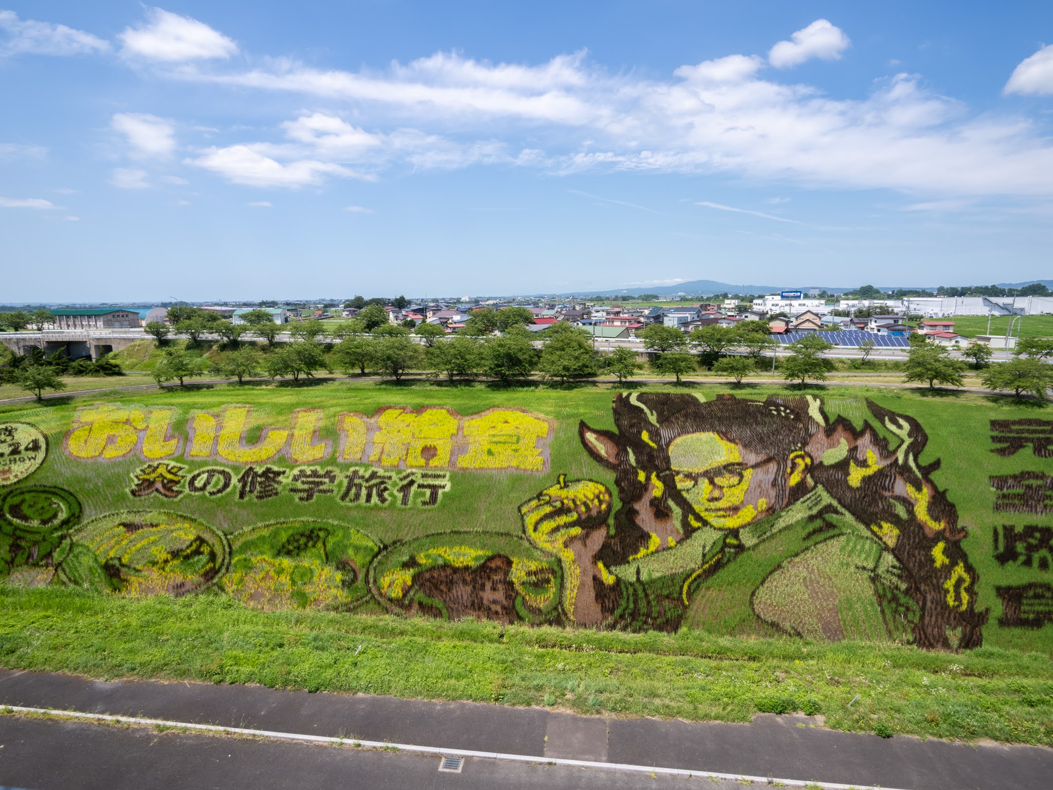 今年の第二田んぼアートは、市原隼人さん主演のドラマ「おいしい給食」シリーズの新作映画「おいしい給食 炎の修学旅行」を題材にしています。
