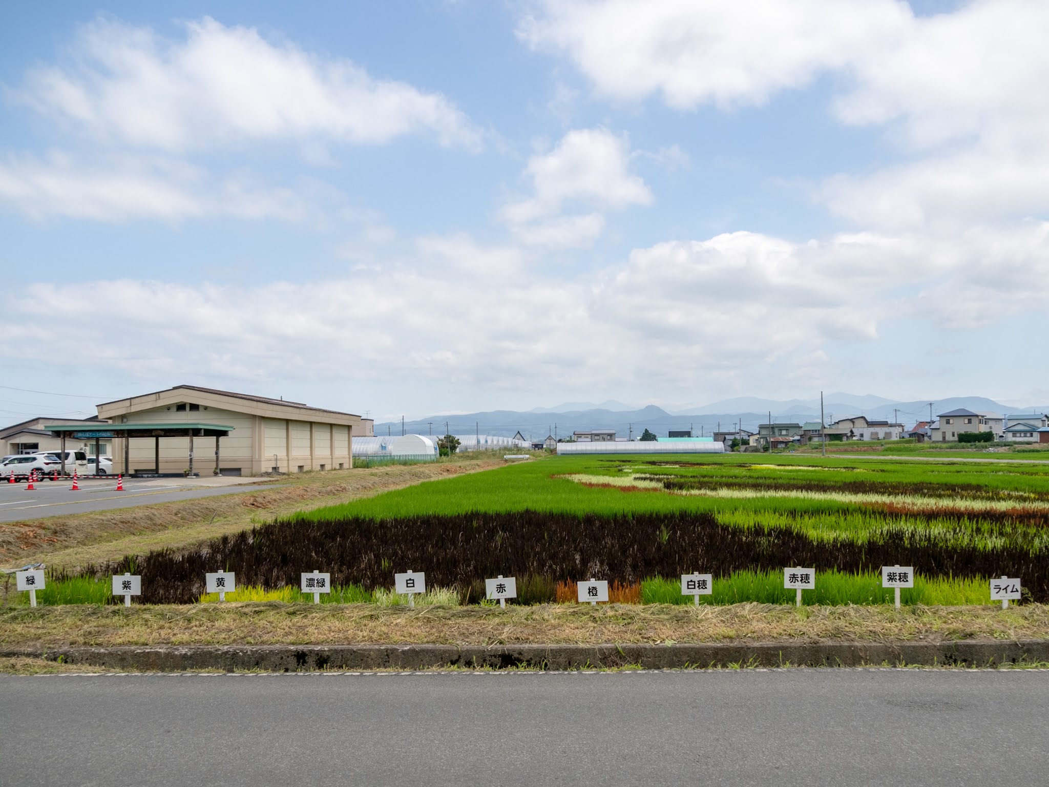 稲がぐんぐんと育ち、緑のキャンバスに鮮やかな色彩がくっきりと浮かび上がってきました。