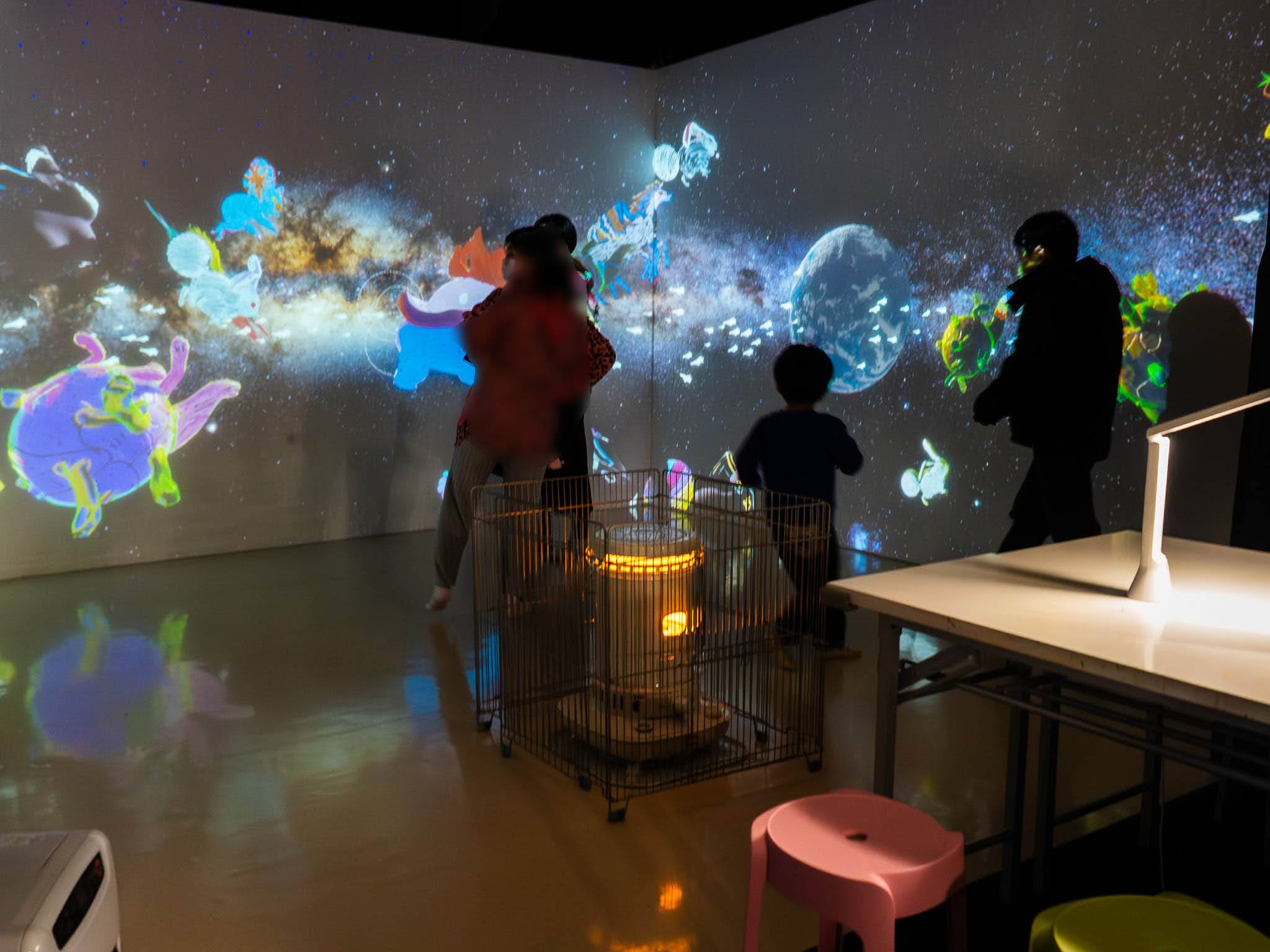 神秘的な音楽に包まれたその部屋は、壁に不思議な生き物たちが投影され、ふわふわと動き回っていました。
