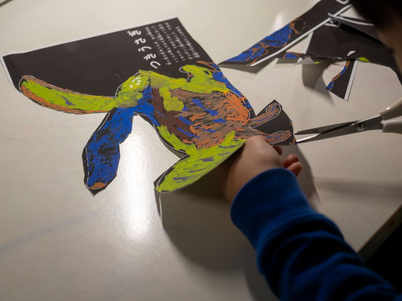 お話ししながらも上手にチョキチョキ切って、難しいところはお母さんにお手伝いしてもらって無事に切り抜き完了!